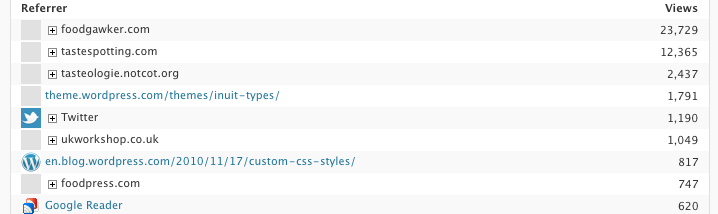 It’s because things{we}make is in the ‘Who’s using this theme’ section in the WordPress Themes Showcase. So people have clicked on us to have a look at what we have done with ‘Inuit Types’.
