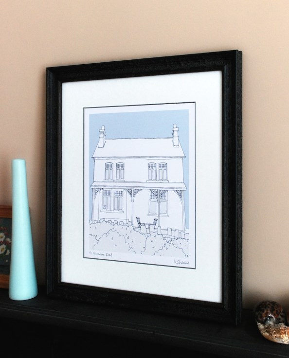 I was so pleased when I found out that Lucy was now drawing houses so I wasted no time in asking her to draw ours as a gift for Ed. I had it expertly framed by Pete at Hall of Frames in Belper.