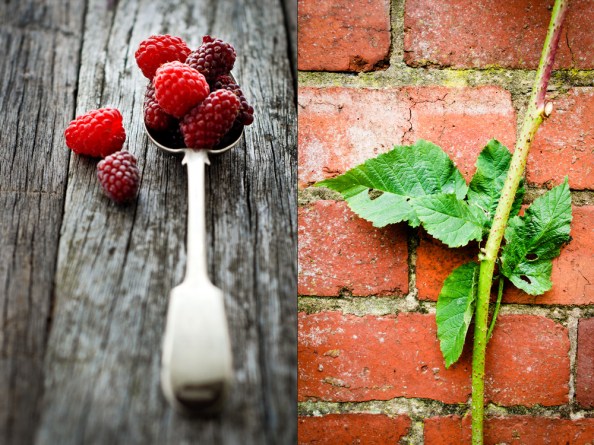 That slightly squished thing on top of the spoon is a tayberry, as is that vicious stalk on the right.