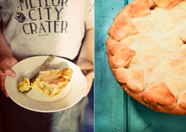 {Claire’s Tip: Don’t worry if some of your apple slices are chunky and some more like slices. This is what gives you chunks of soft apple in the pie as well as a nice soft base. I don’t like to use a ‘corer’ as I hate that stringy bit of apple core that you bite into when you use them.}