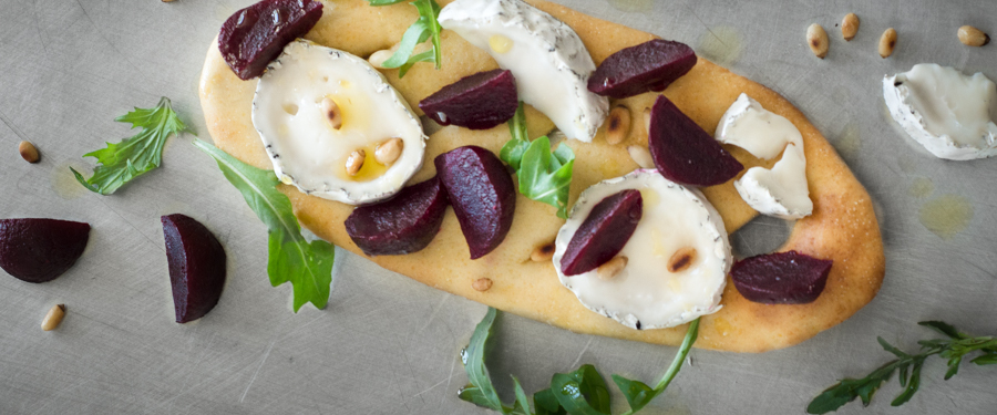 Earthy Topping Ash coated goats cheese Beetroot Pine nuts Rocket Garlic olive oil
