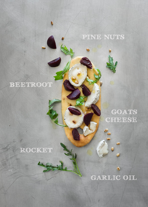 Earthy Topping Ash coated goats cheese Beetroot Pine nuts Rocket Garlic olive oil