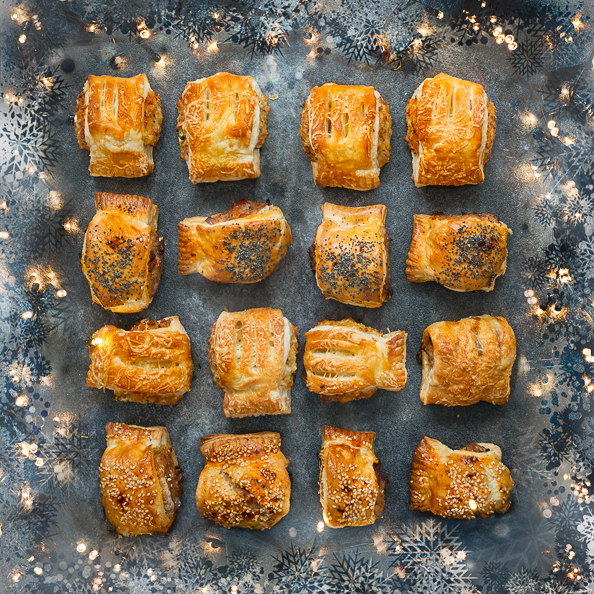 One Pack of puff pastry can make 8 sausage rolls and 8 ‘no sausage’ cheese and spring onion rolls, something for everyone.
