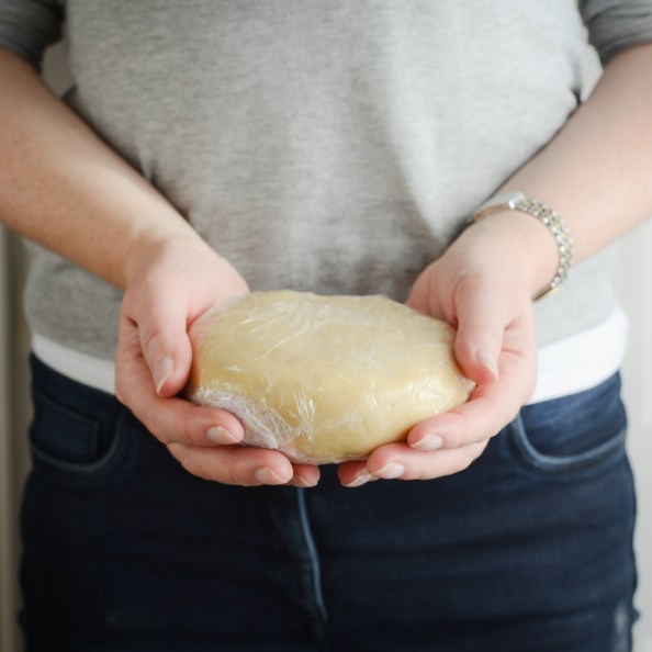 Pull the dough into a ball and wrap in clingfilm and refrigerate for 30 minutes before rolling.