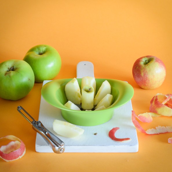 We have a small, wonky apple tree in the garden with three different apple varieties grafted into one, so it’s a Bramley-Cox-Russet tree. Except it’s minus its Bramley bit because that branch snapped off during heavy snow one Winter, so I have to get our Bramley supplies from Grandad’s tree.