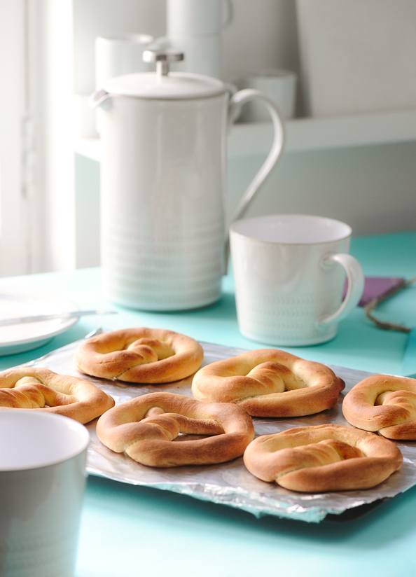 For Savoury Pretzels – brush with butter and sprinkle with sea salt.