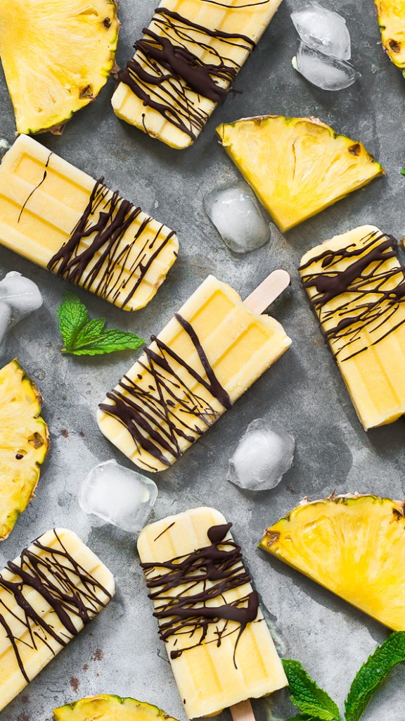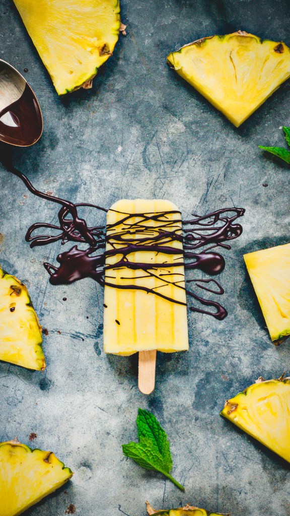 Pineapple and Mango Popsicles with Chocolate Drizzle (makes 8)