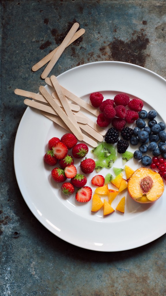 Seems like a good time to share these lollipops/popsicles/ice lollies. Good for cooling down sore throats and hot people. They are mostly made with all the healthy things: yoghurt, coconut water, fresh berries, chopped fruit, which is good, as after unsuccessfully squeezing into last years sundress, I think I ought to stick to these as dessert up until our Summer holiday.