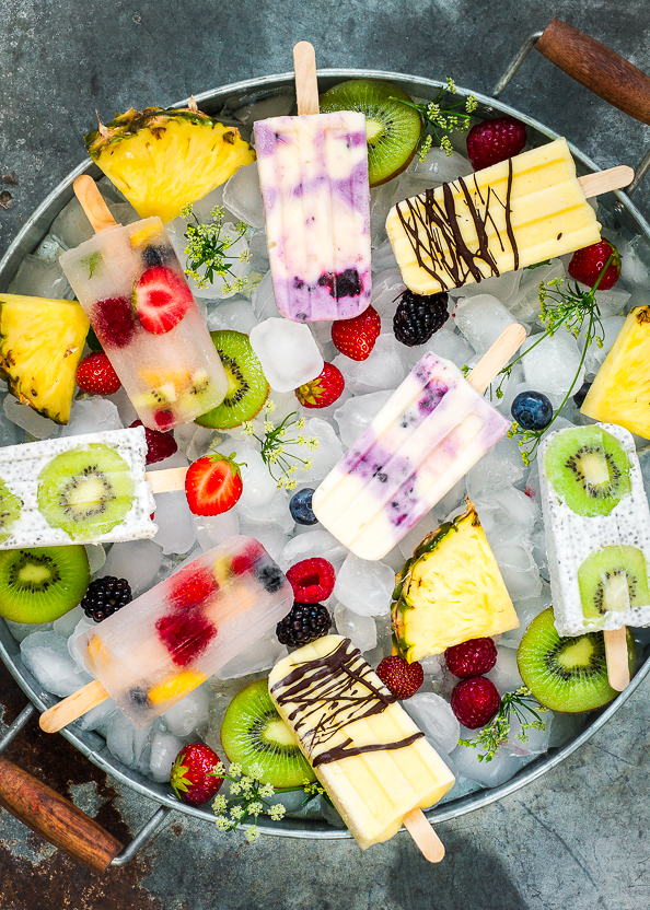 Once you start making pops, you just can’t stop, the options are endless. Just mix any berries with yoghurt or coconut water or liquidise soft fruit like pineapple and mango and it just kinda works.