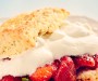 Not a pink 1970's rag doll but a rich, open-weave scone drenched with strawberries and cream.